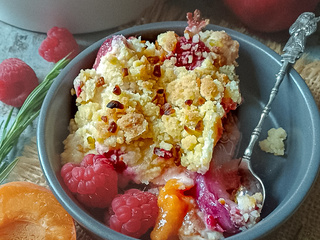 Crumble très gourmand aux fruits de l'été et romarin Par Les petits plats du Prince